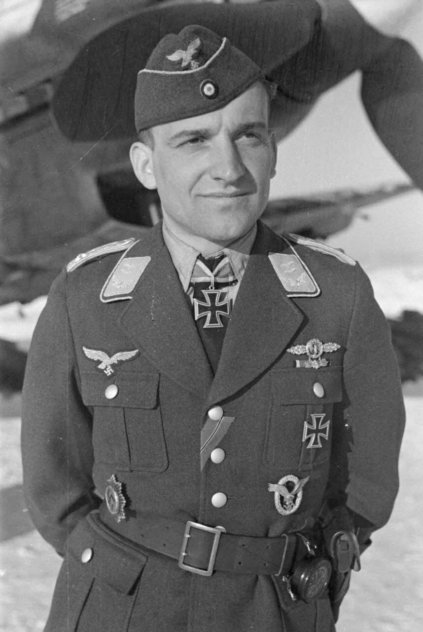 Portrait du lieutenant (Oberleutnant) Hans-Ulrich Rudel, du Sturzkampfgeschwader 2 Immelmann, décoré de la croix de chevalier de la croix de fer (Ritterkreuz).