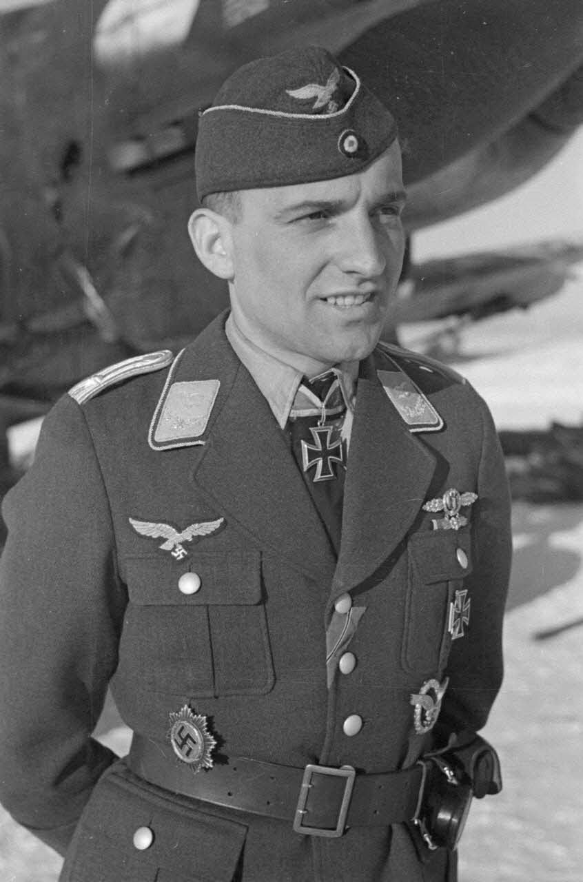 Portrait du lieutenant (Oberleutnant) Hans-Ulrich Rudel, du Sturzkampfgeschwader 2 Immelmann, décoré de la croix de chevalier de la croix de fer (Ritterkreuz).