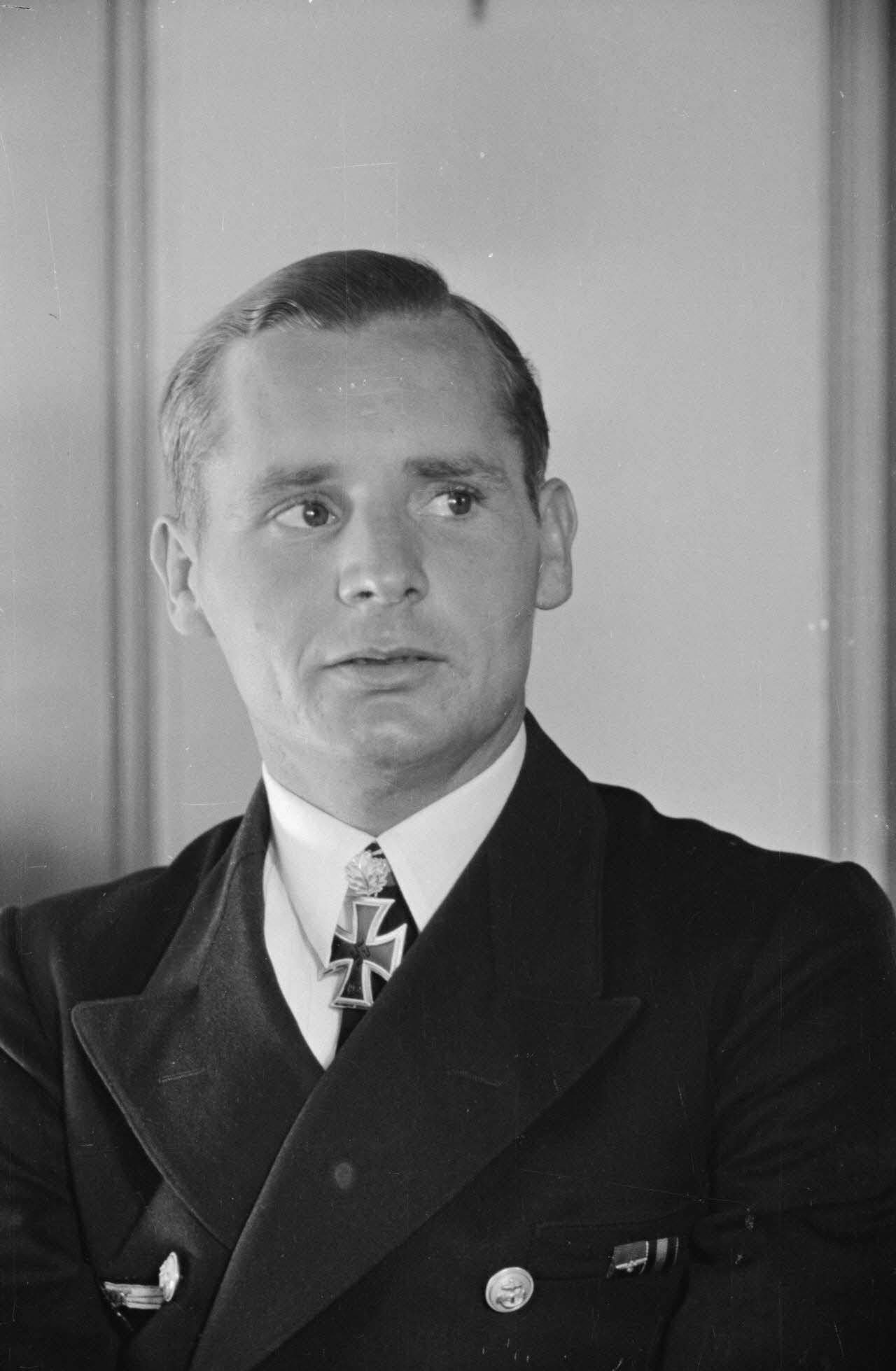 Portrait du lieutenant (Oberleutnant zur See) Erich Topp, commandant du sous-marin U-552 et titulaire de la croix de chevalier de la croix de fer (Ritterkreuz).
