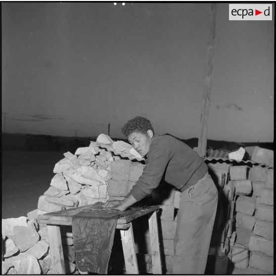 Portrait du tirailleur Kaddour lavant son linge au poste de El Ma El Abiod.