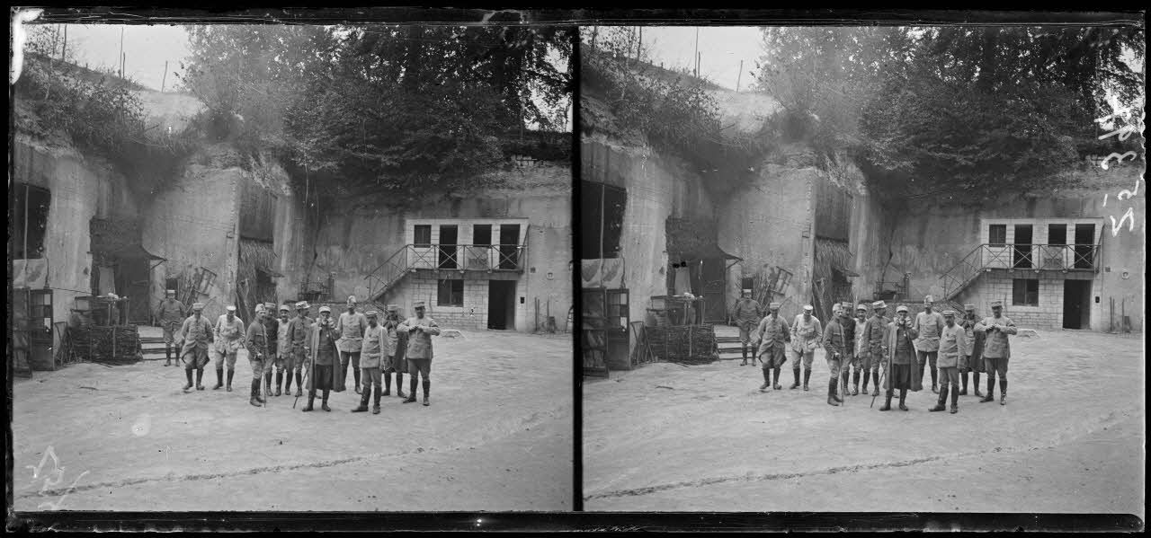 Dans la carrière du Chauffour (sur la commune de Thiescourt, Oise, Z 397 à Z 408), les soldats organisent leur cantonnement dans la carrière (cuisine, chambrée, tailleur et cordonnier, poste de secours, cimetière).