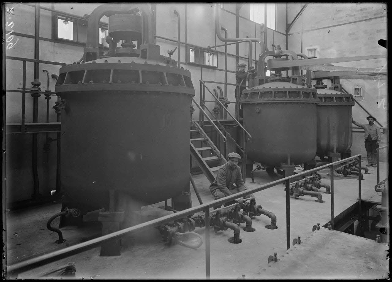 Salin-de-Giraud (Bouches-du-Rhône). Usine de produits chimiques (Compagnie d'Alais et de Camargue). Fabrication de la mélinite. Atelier d'essoreuses.