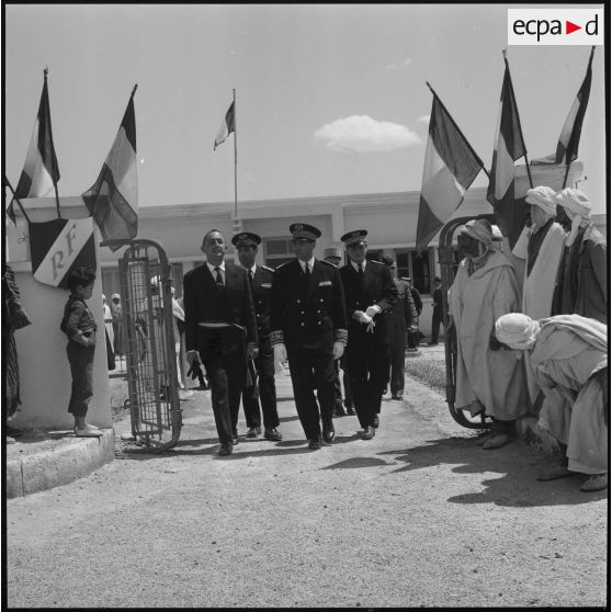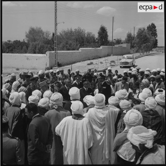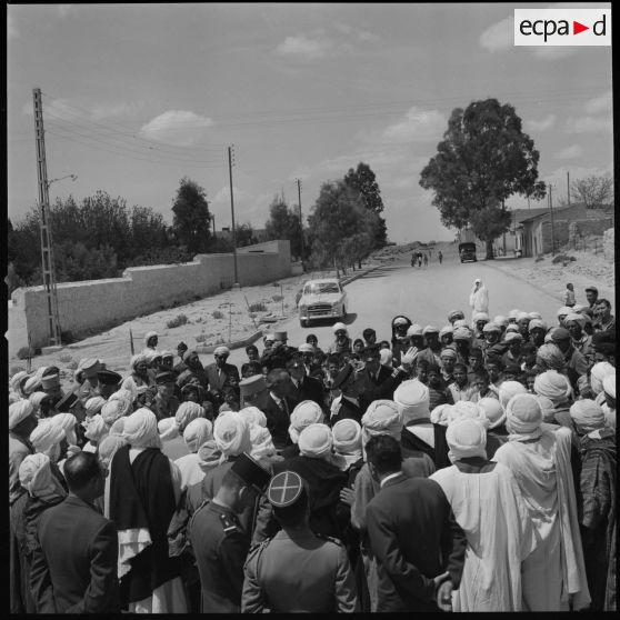 Fonds photographique de Arthur Smet (1932 - ). Visite officielle d'un préfet dans la commune d'El Kreider, dans le Sud Oranais.