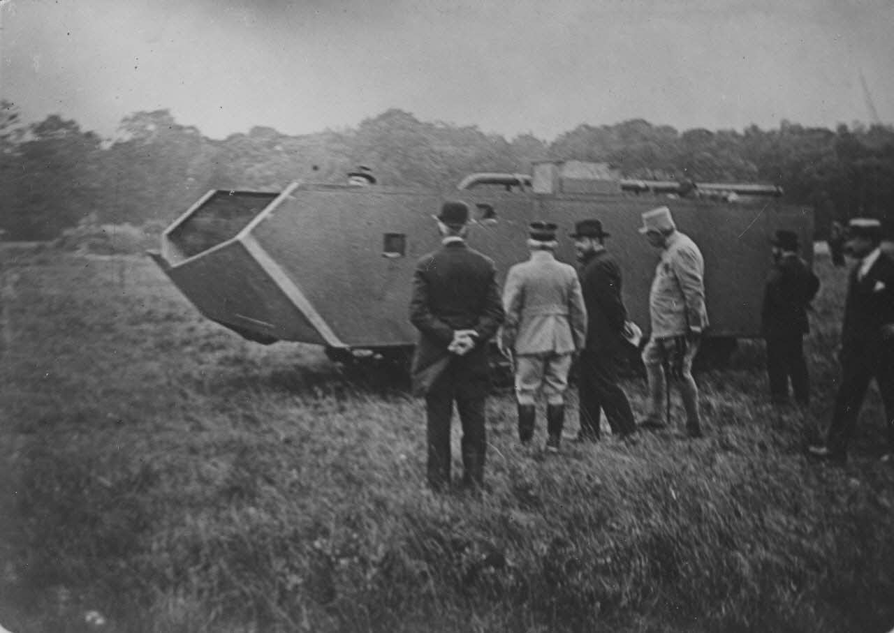 Première expérience du char d'assaut St Chamond à commande électrique (Vincennes juillet 1916).