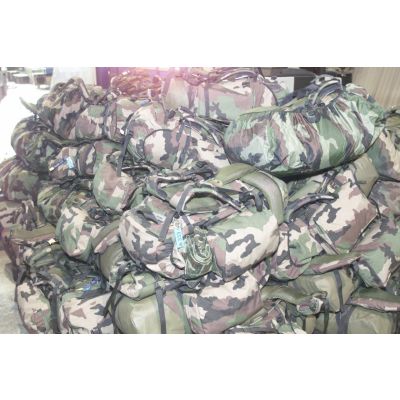 Préparatifs au départ en Afghanistan pour le 21e RIMa (régiment d'infanterie de marine). Paquetages empilés devant un panneau de l'armée de l'Air portant l'insciption "Esterel".