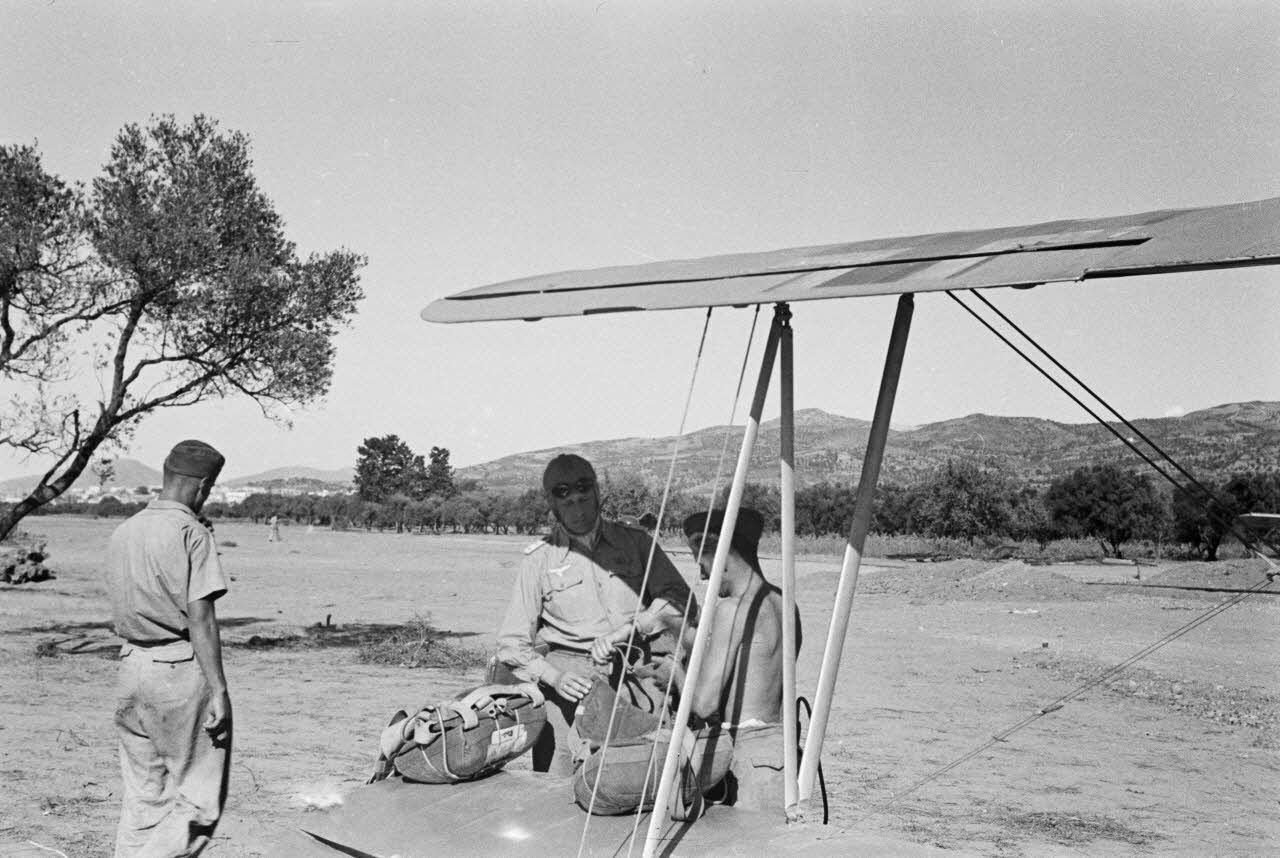 A bord d'un avion Focke-wulf Fw-44, au-dessus du terrain d'aviation crétois de Kastelli occupé par le Aufklärungsgruppe 123