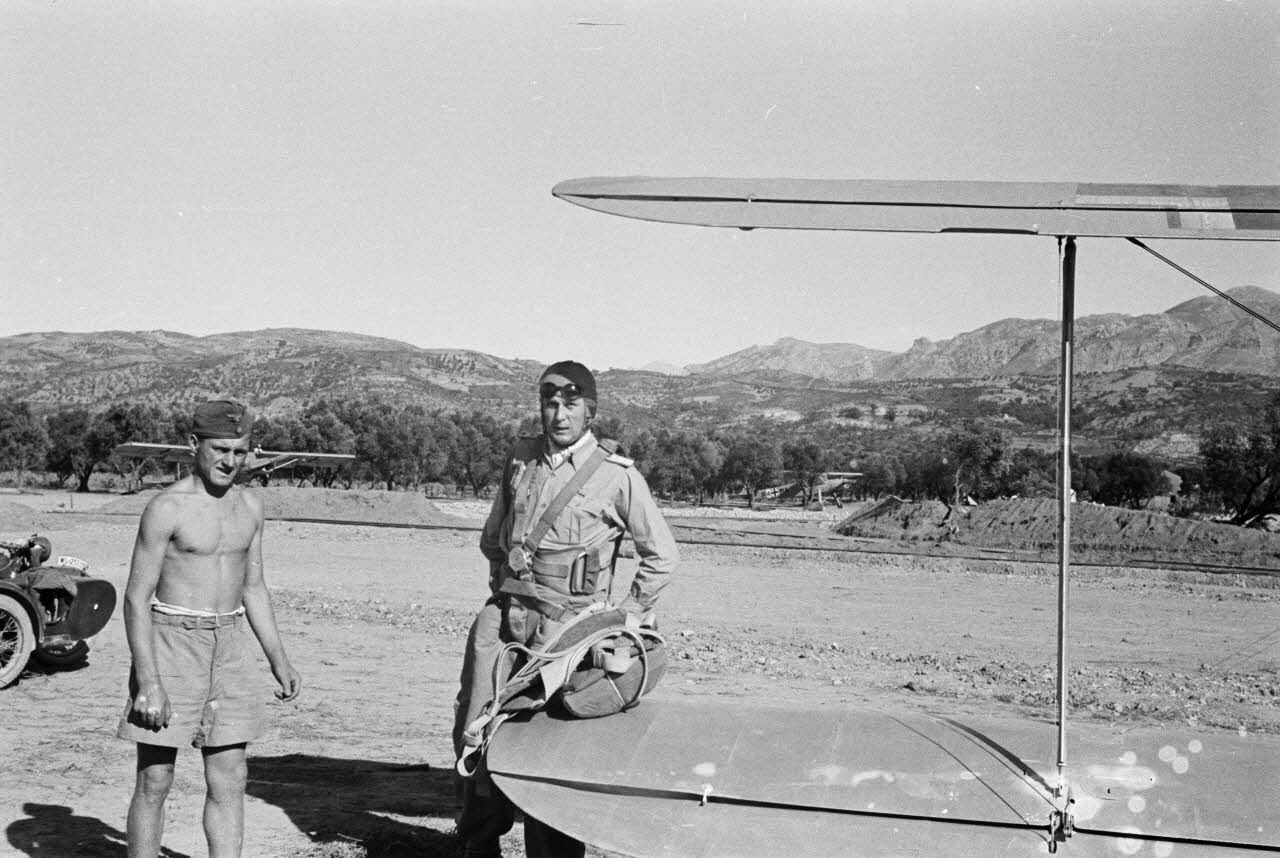 A bord d'un avion Focke-wulf Fw-44, au-dessus du terrain d'aviation crétois de Kastelli occupé par le Aufklärungsgruppe 123