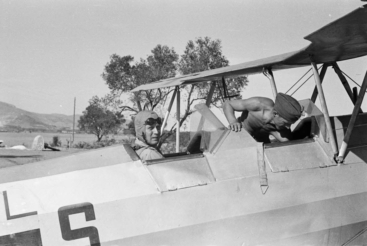 A bord d'un avion Focke-wulf Fw-44, au-dessus du terrain d'aviation crétois de Kastelli occupé par le Aufklärungsgruppe 123