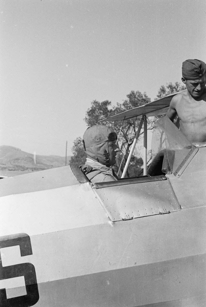 Préparatifs pour un vol d'entrainement à bord d'un Focke Wulf Fw 44.