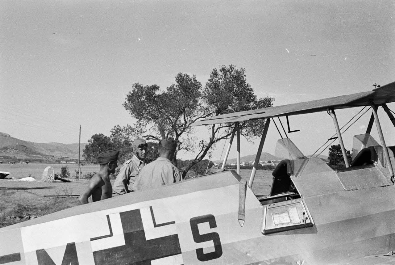 A bord d'un avion Focke-wulf Fw-44, au-dessus du terrain d'aviation crétois de Kastelli occupé par le Aufklärungsgruppe 123