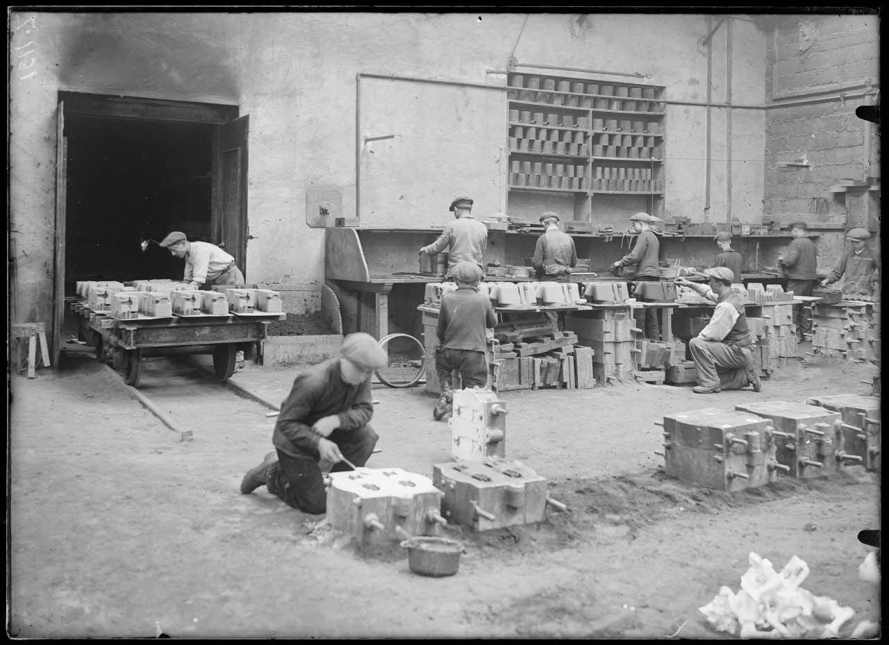 Près Annecy. Fonderies et forges de Cran. Transformation d’aluminium. Fabrication des noyaux. [légende d’origine]