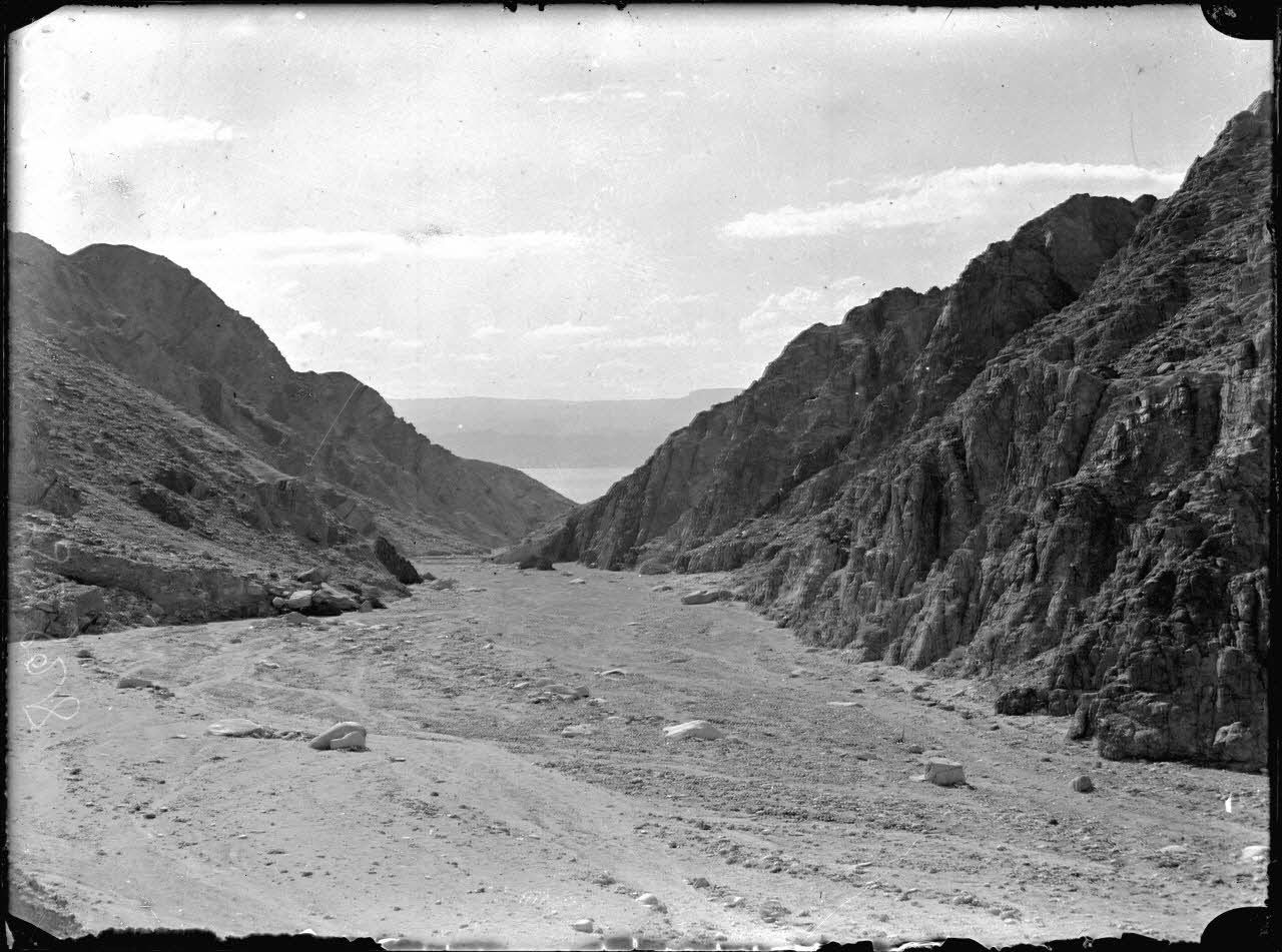 Près d'Akaba (Arabie). L'ouadi Akaba, au fond, le golfe. [légende d'origine]