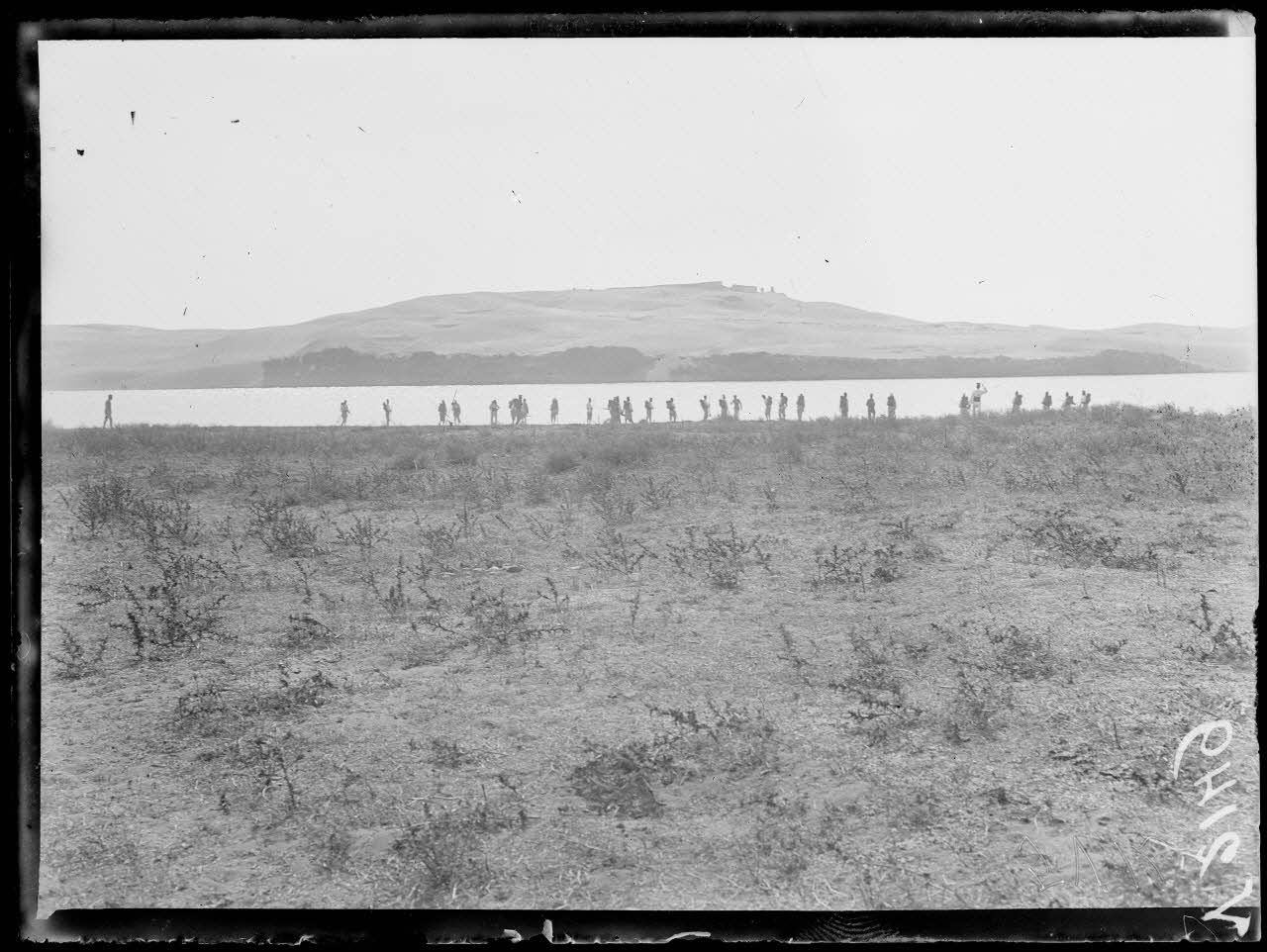 Azemmour (Maroc). Passage du lac par les troupes marocaines. Vue générale.