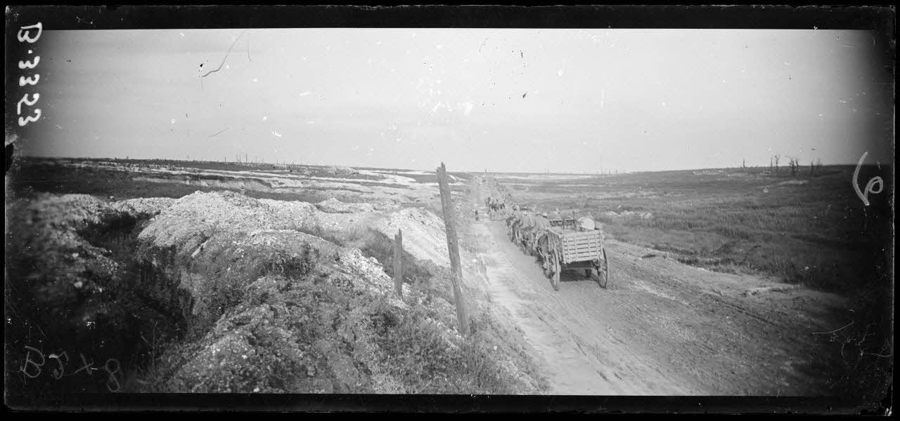 Près d’Herbécourt, le ravitaillement passe sur la route d’Herbécourt et traverse le lieu des combats du 1er juillet.