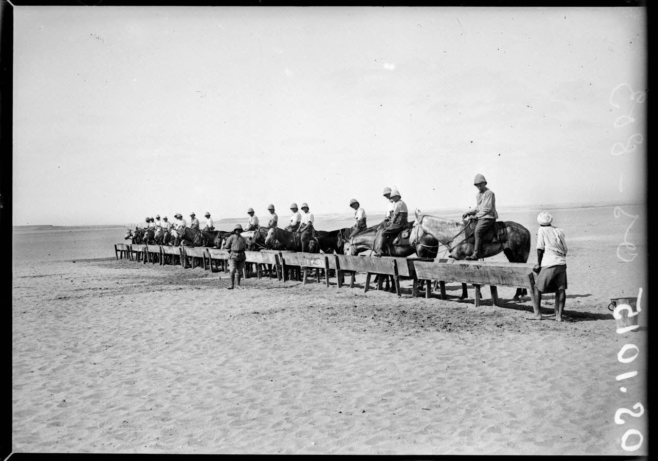 Près d'Ismaïlia. Camp de Ferry-Post. Chasseurs d'Afrique, l'abreuvoir. [légende d'origine]
