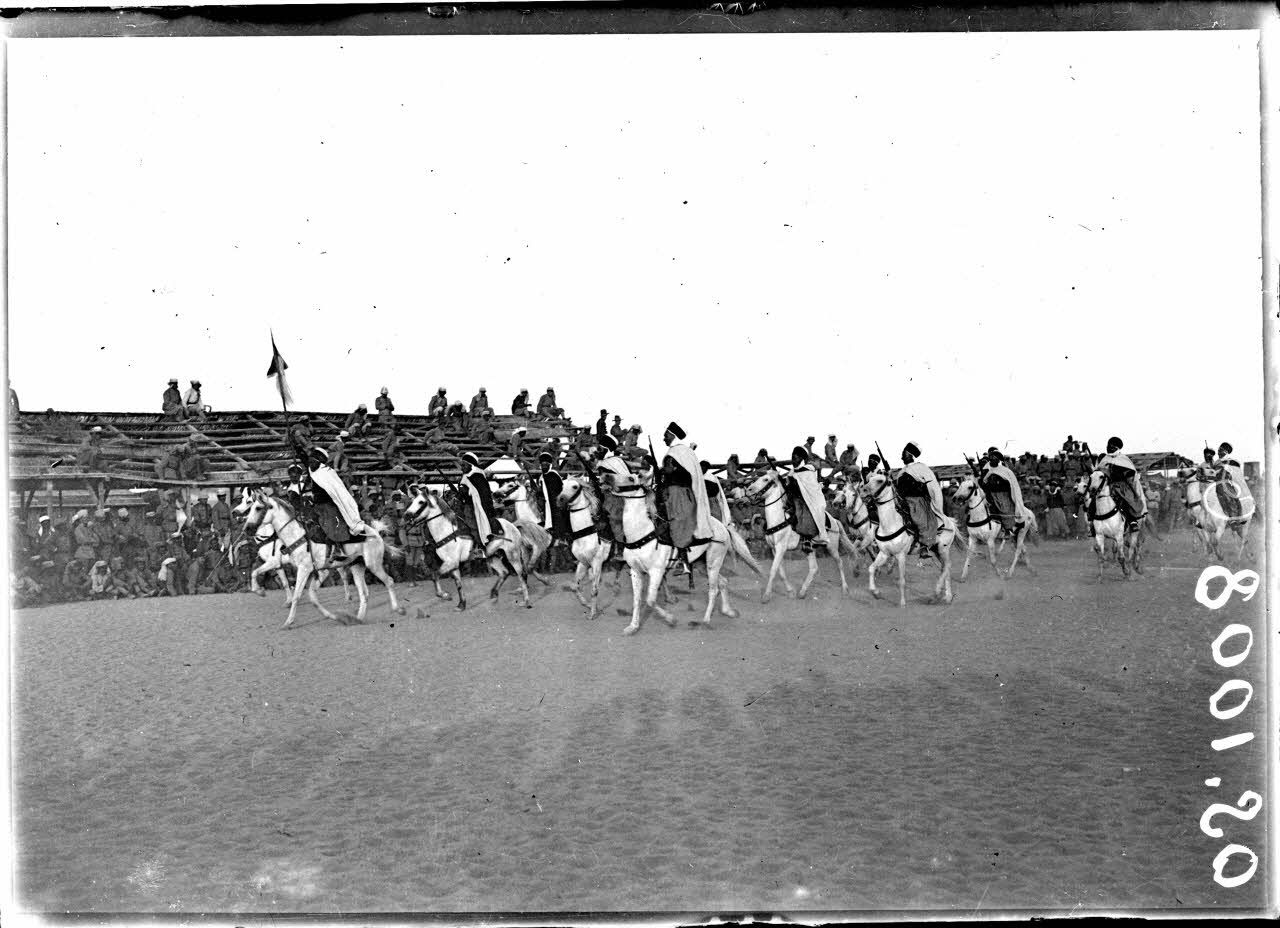 Près d'Ismaïlia. Camp de Ferry-Post. Fantasia de spahis. [légende d'origine]