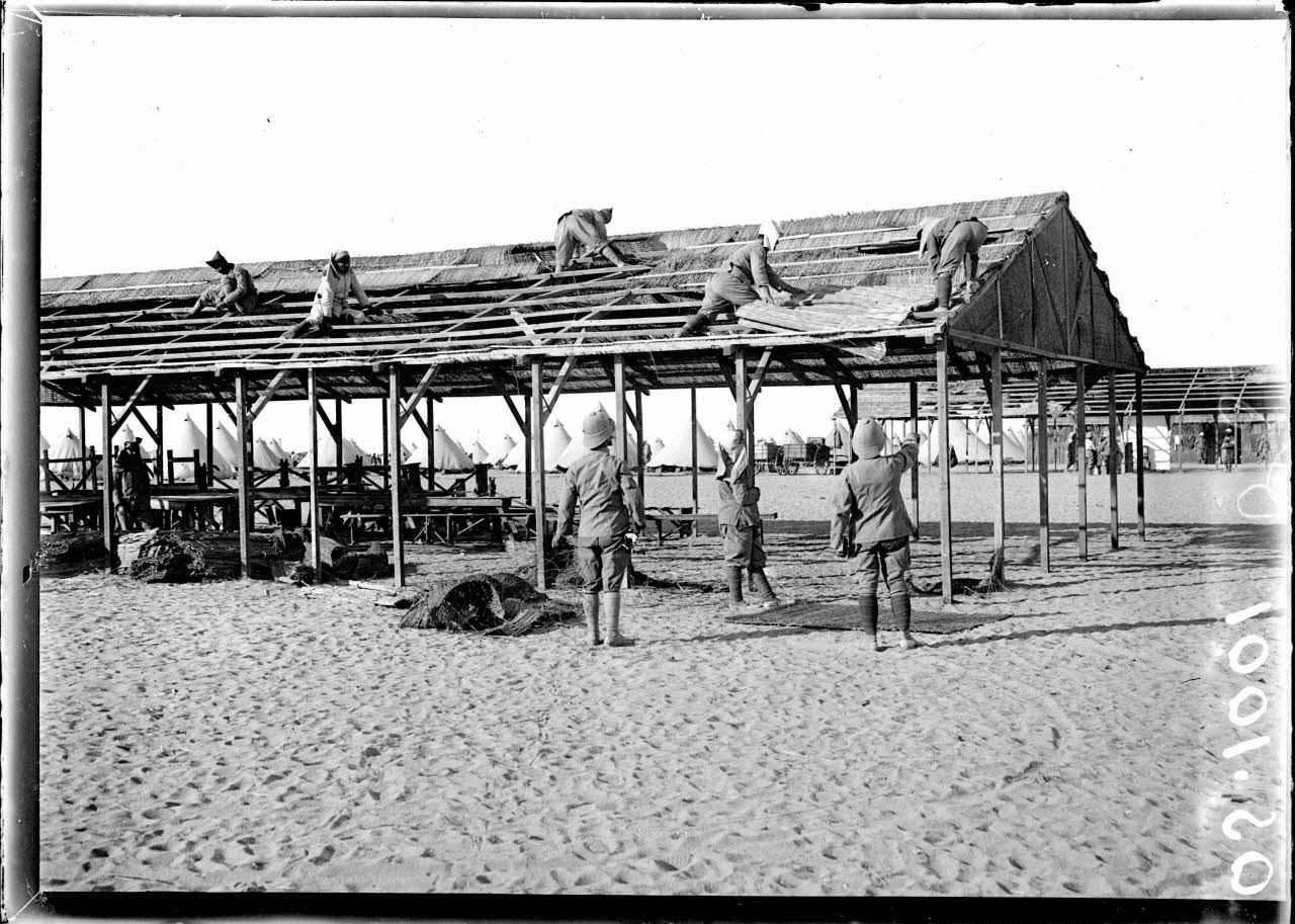 Près d'Ismaïlia. Le camp de Ferry-Post. Construction de hangars. [légende d'origine]