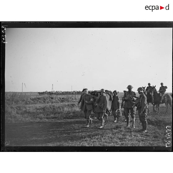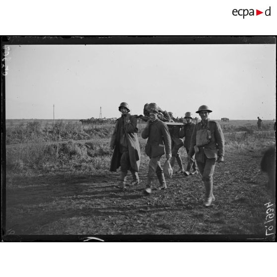 Près d'Inchy, pendant l'attaque sur Cambrai, prisonniers allemands transportant des blessés.