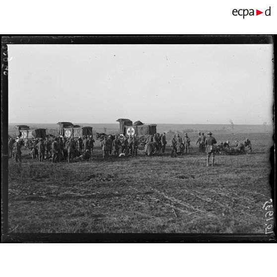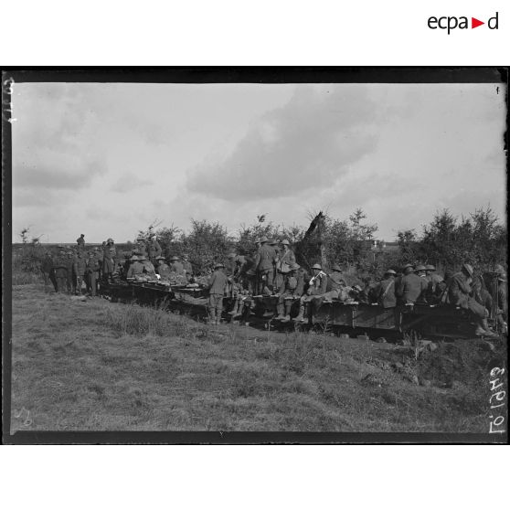Près de Quéant, évacuation de blessés anglais par Decauville à essence.