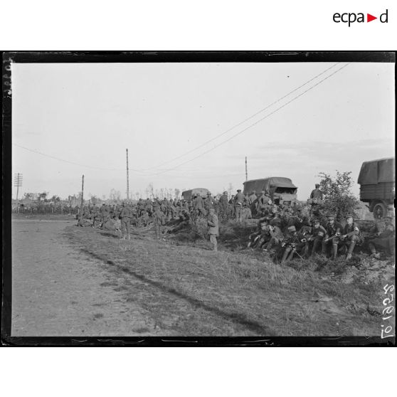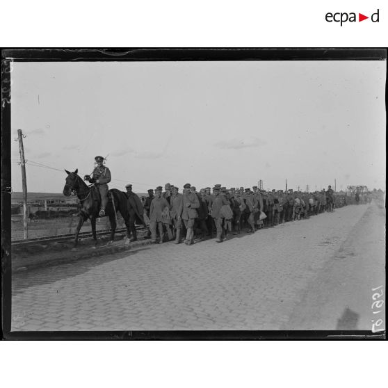 Près de Beugny, route de Cambrai, prisonniers allemands faits au Bois Bourlon. [légende d'origine]
