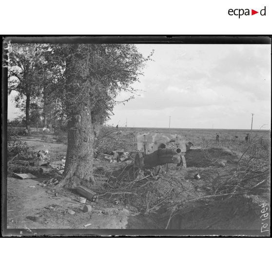 Raillencourt, batterie allemande de 150 abandonnée en bordure de la route d'Arras - Cambrai.