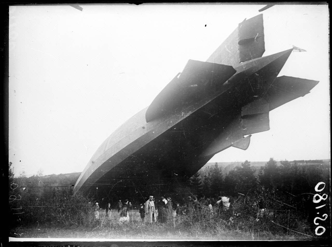 Près de Bourbonne-les-Bains (Haute-Marne). Le Zeppelin L49, vue arrière.