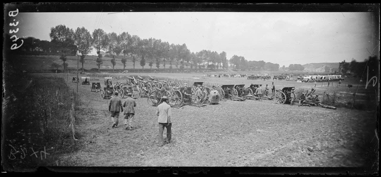 Près de Cappy (Somme), ensemble de canons allemands pris par le 1er corps colonial. [légende d’origine]
