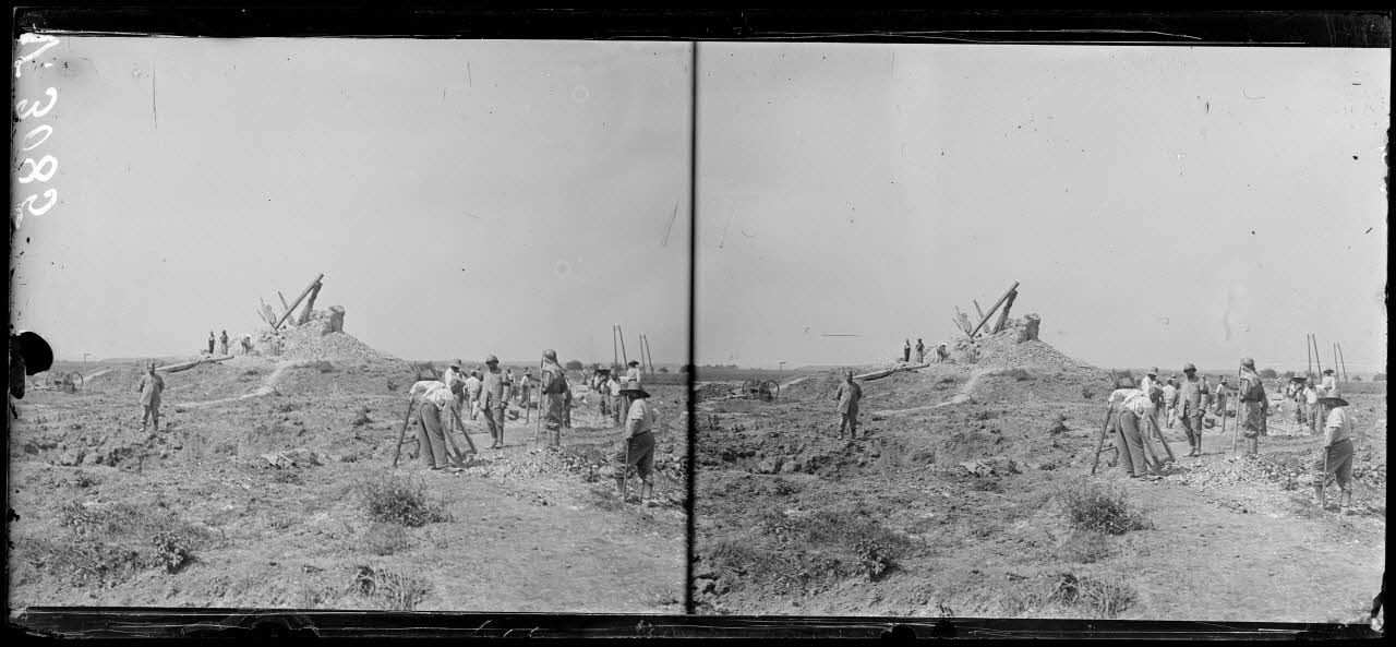 - Près de Grivesnes (Somme, 07/08/1918, V 2990 à V 2992) un mortier d'artillerie de 220 mm M 1880 de Bange est mis en batterie.