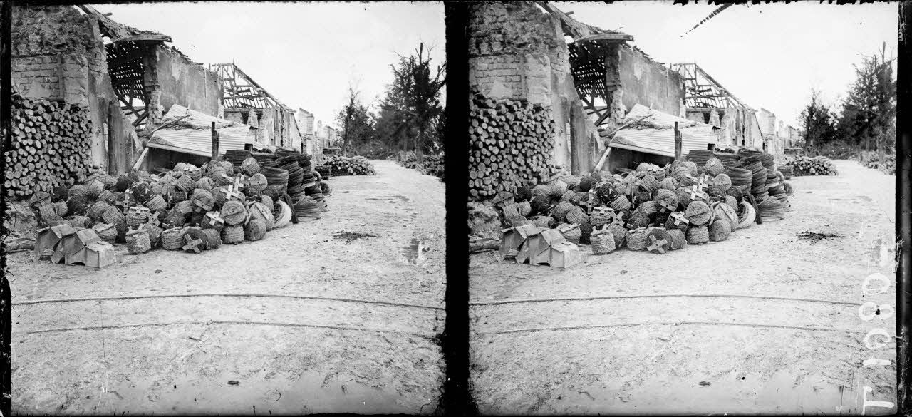 Près de la ferme des Marquises. Dépôt de matériel de tranchées. [légende d'origine]