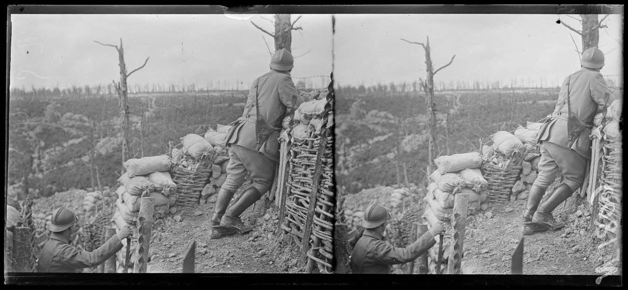 - Près de La Harazée, dans le sous secteur de Condé, (Marne, 17/08/1917), les lignes de tranchées sont occupées par les soldats français. Guetteurs et mitrailleurs sont postés dans leurs trous de combat.