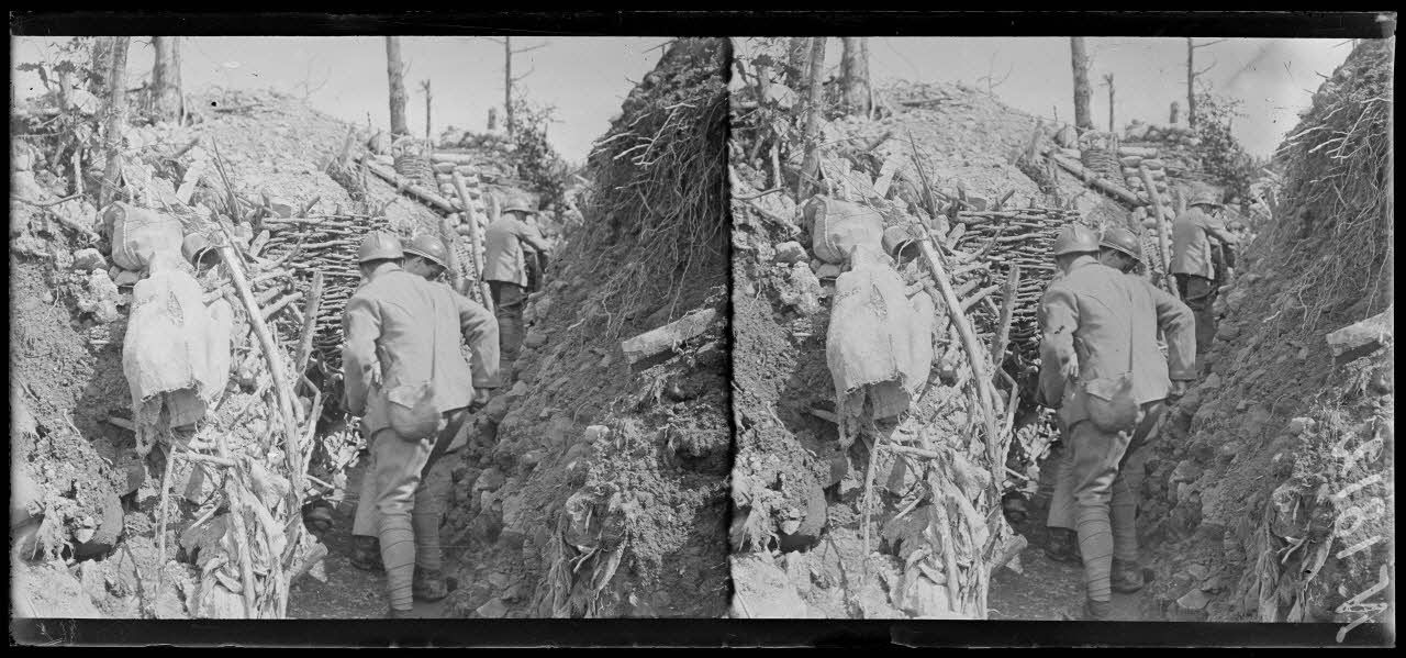 - Près de La Harazée, dans le sous secteur de Condé, (Marne, 17/08/1917), les lignes de tranchées sont occupées par les soldats français. Guetteurs et mitrailleurs sont postés dans leurs trous de combat.