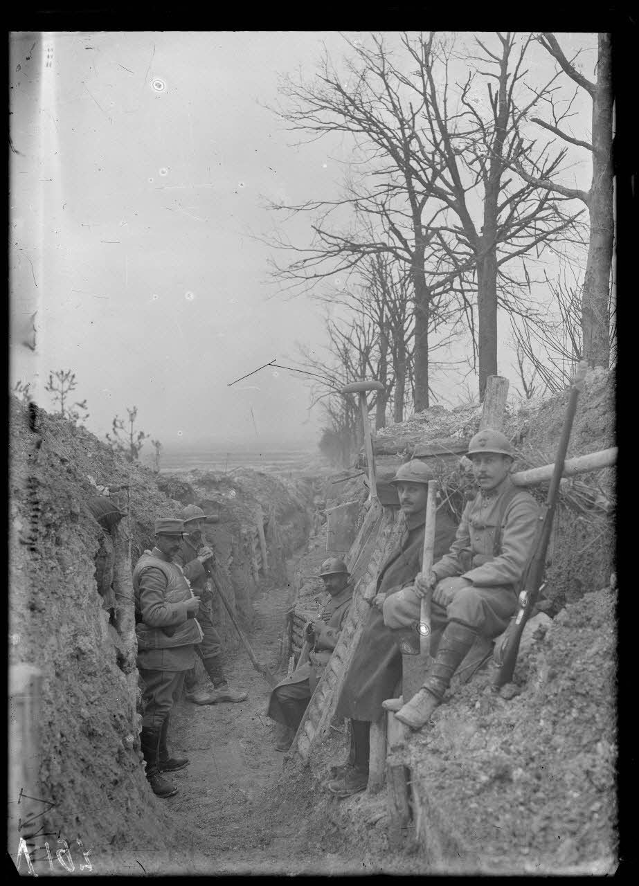 Près de la Pompelle, Marne, tranchée de 1re ligne sur la route de Reims à Châlons. [légende d'origine]