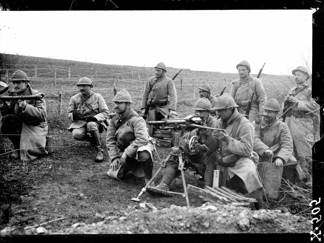 - des mortiers de tranchée et des crapouillots, une mitrailleuse Saint-Etienne modèle 1907 en batterie dans les tranchées du 341e RI ;