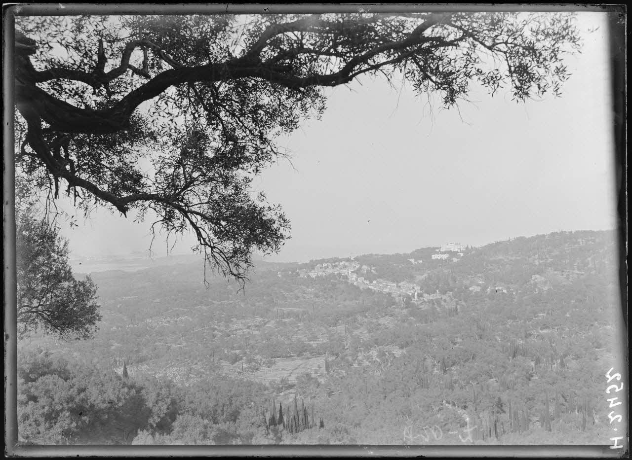Près de Maisonghi. L'Achilleion et Corfou vus de la route de Broganoitika. [légende d'origine]