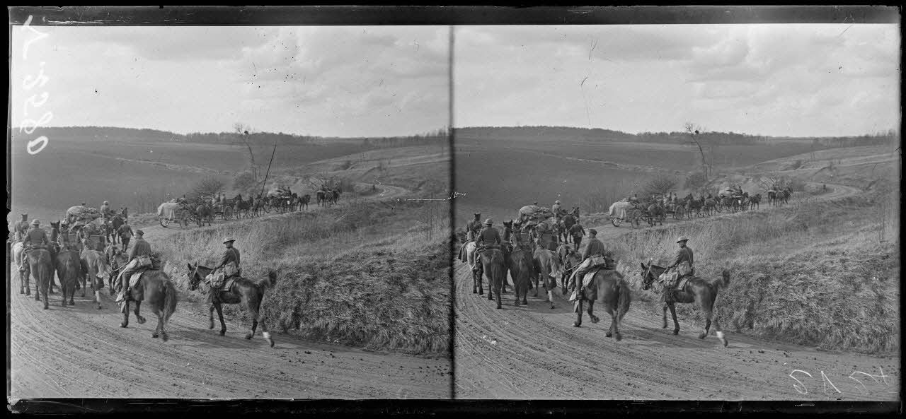 - Près de Méru (Oise, 01/04/1918, V 2555 à V 2566) du matériel agricole est évacué vers l'arrière du front pour être préserver de la destruction. Des troupes françaises arrivent par wagon pour renforcer le front.