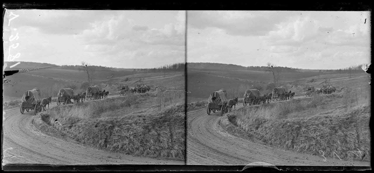 - Près de Méru (Oise, 01/04/1918, V 2555 à V 2566) du matériel agricole est évacué vers l'arrière du front pour être préserver de la destruction. Des troupes françaises arrivent par wagon pour renforcer le front.