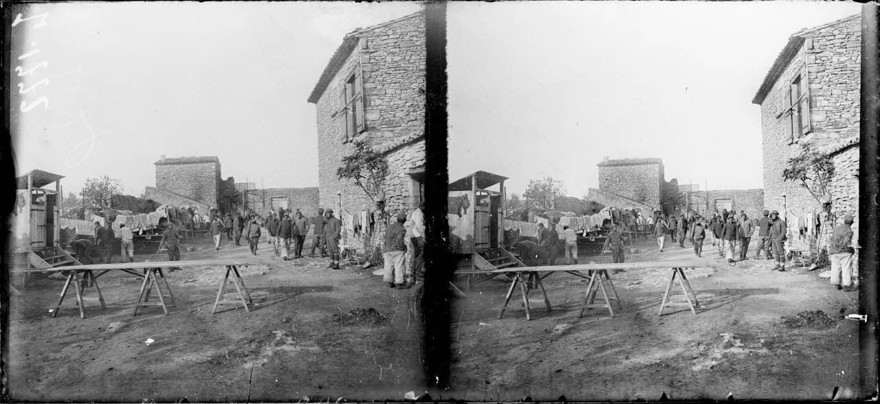 - les tirailleurs sénégalais blessés : en chambre, un tirailleur entouré du docteur Bonnafous et de deux religieuses, un groupe de tirailleurs convalescents, des tirailleurs en chambre jouant à l'awalé (à gauche) et aux dames (SPA 34 L 1794), le réfectoire, la cour de l'hôpital, le laboratoire, la salle des pansements ;