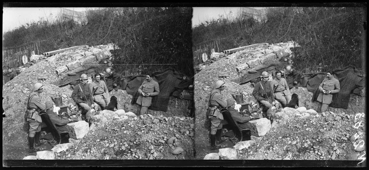 Près de Rive. Officiers français visitant un P.C. italien (13-2-18).