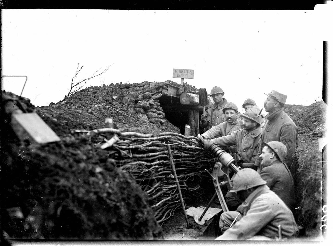 - des mortiers de tranchée et des crapouillots, une mitrailleuse Saint-Etienne modèle 1907 en batterie dans les tranchées du 341e RI ;
