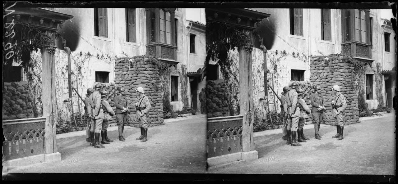 Près de Rive. Officiers français visitant un P.C. italien (13-2-18). [légende d'origine]
