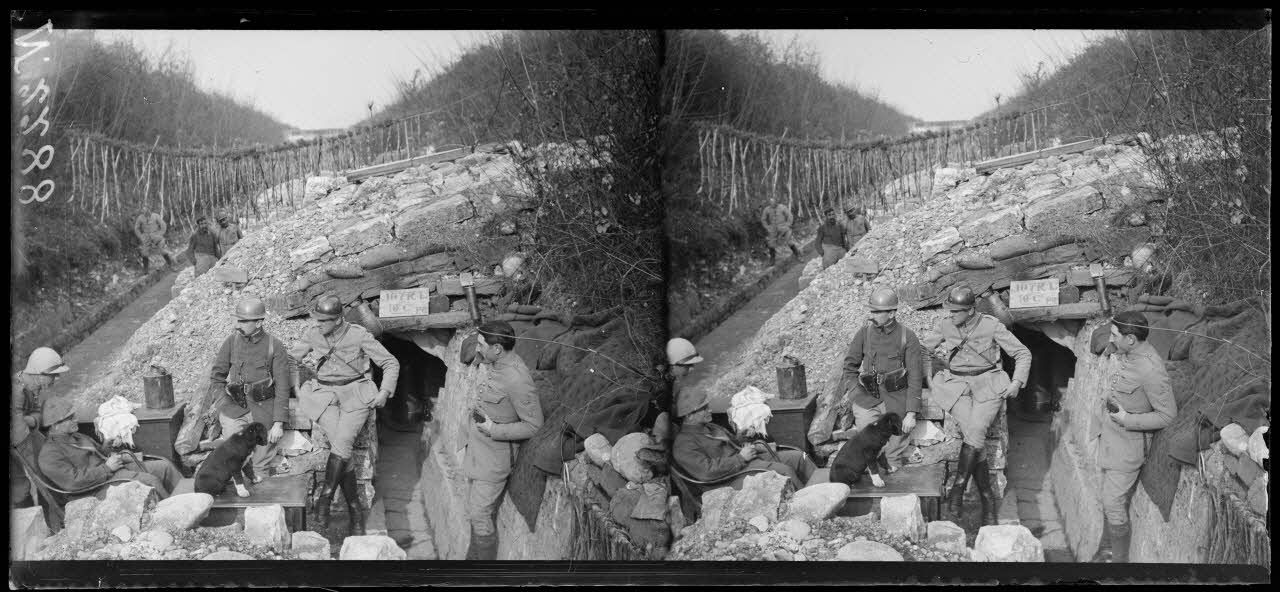 Près de Rive (Italie). Un abri dans les tranchées au bord de la Piave "Restaurant Charentais".
