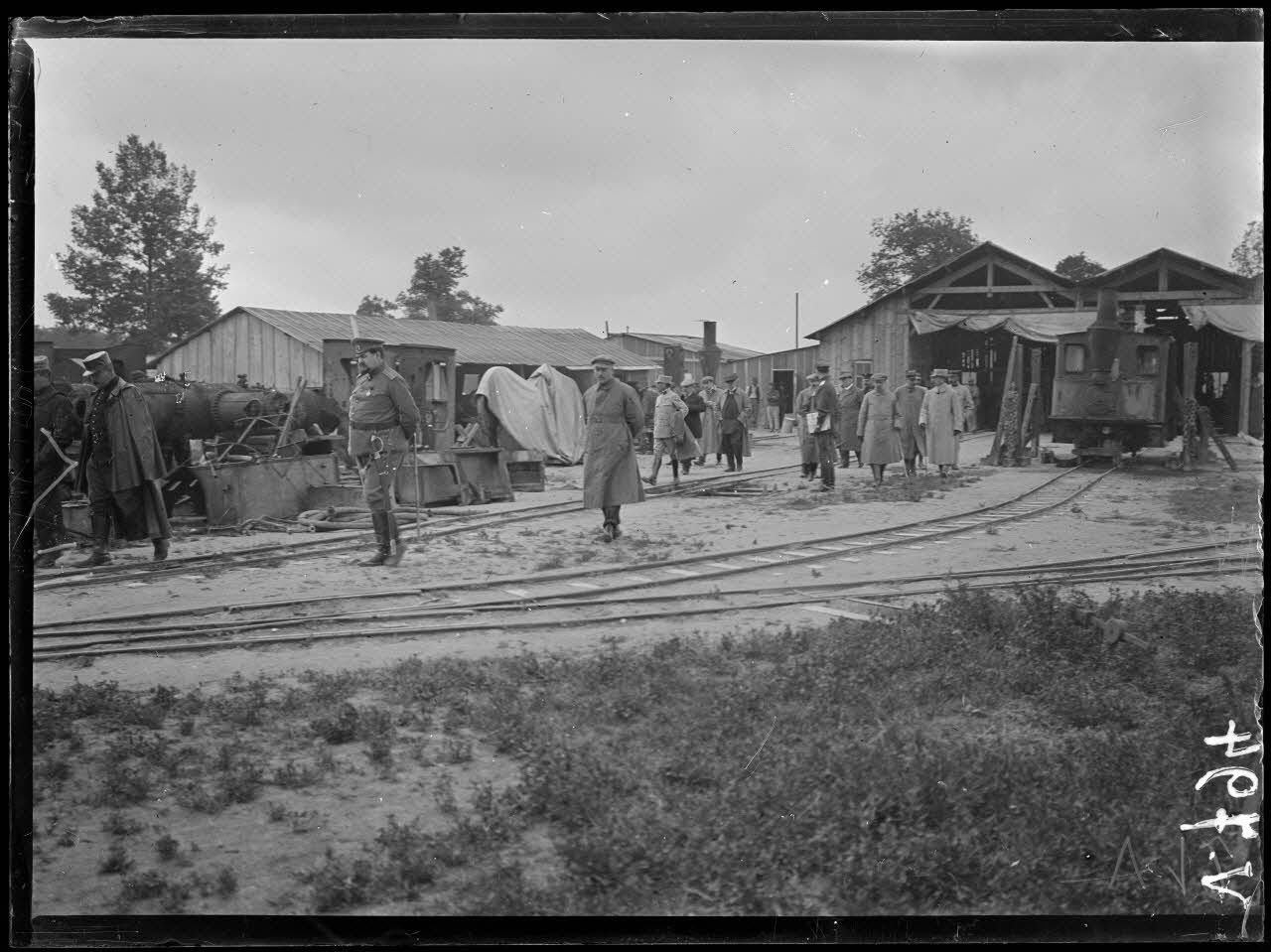 Près de Suippes, Marne, atelier de réparation du matériel des voies et des trains Decauville.