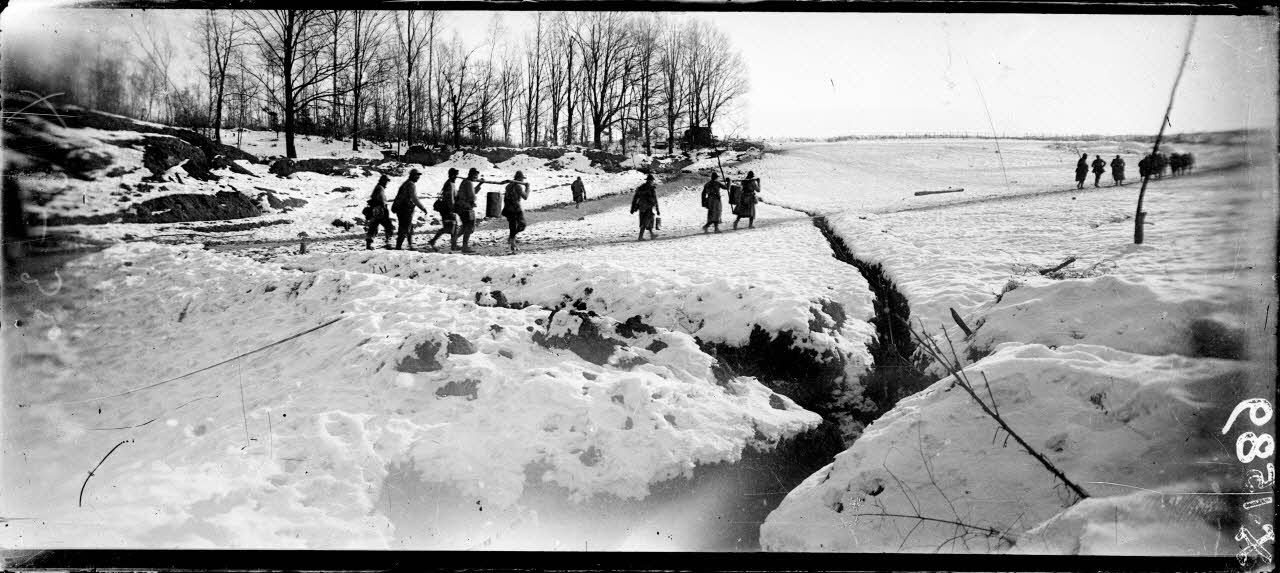 Près de Tracy-le-Val (Oise). Soldats portant la soupe aux premières lignes. [légende d'origine]