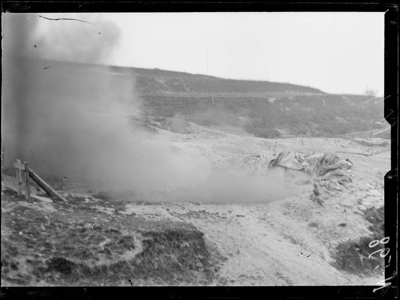 - dans la région de Souain, des canonniers marins et une pièce de 16 cm, une antenne chirurgicale souterraine, une église et un cimetière en ruines, une croix commémorative des combats de mars 1915 au moulin de Souain, des hommes au repos à la ferme des Wacques, chassant la poule d’eau ;