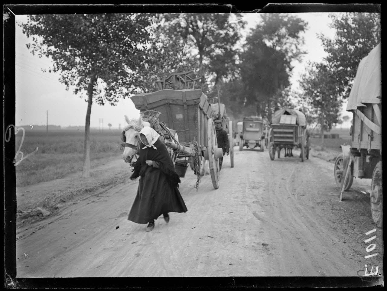 Près Lamotte-en-Santerre (dans la Somme). Sur la route, paysanne évacuée déménageant ses meubles (30.6.16). [légende d'origine]