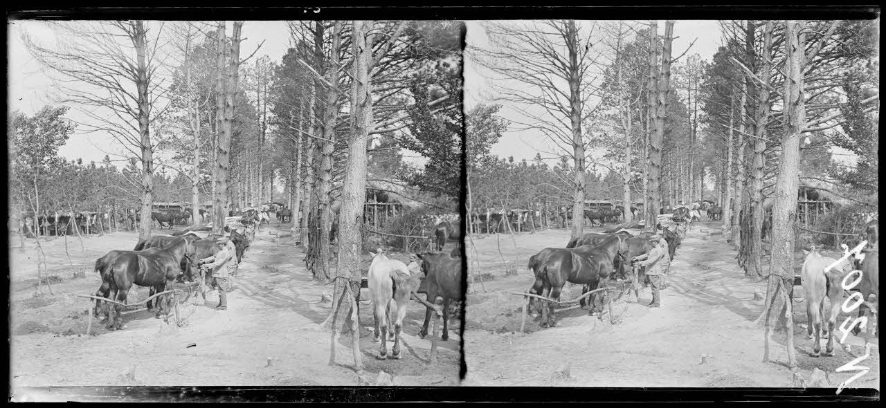Près de Livry-sur-Vesle, des fantassins au cantonnement élèvent un porc. Non loin de là, un ballon d'observation français est parqué et camouflé. Dans un cantonnement d'artillerie, des chevaux sont alignés (N 2004 à N 2007).