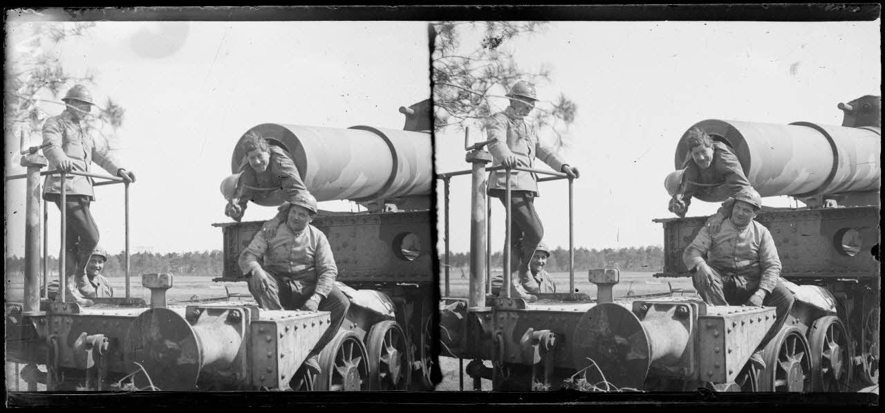 Près Mourmelon-le-Petit (Marne). Manoeuvre de pointage d'un canon de 400 (avril 1917).