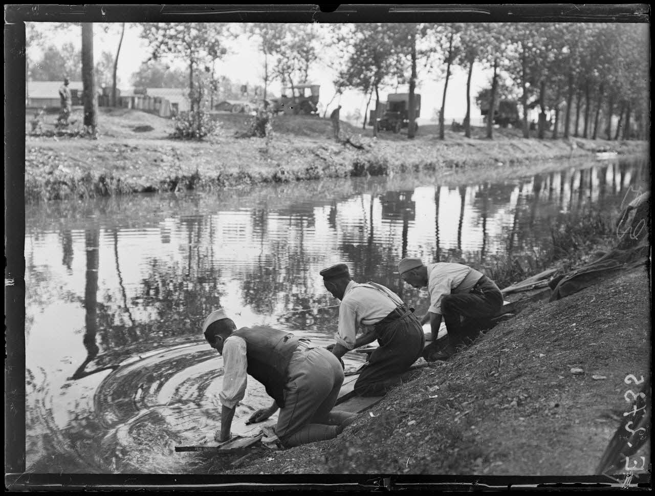 Près Saint Dizier. Haute Marne. Sur le canal de Wassy. Prisonniers lavant le linge.