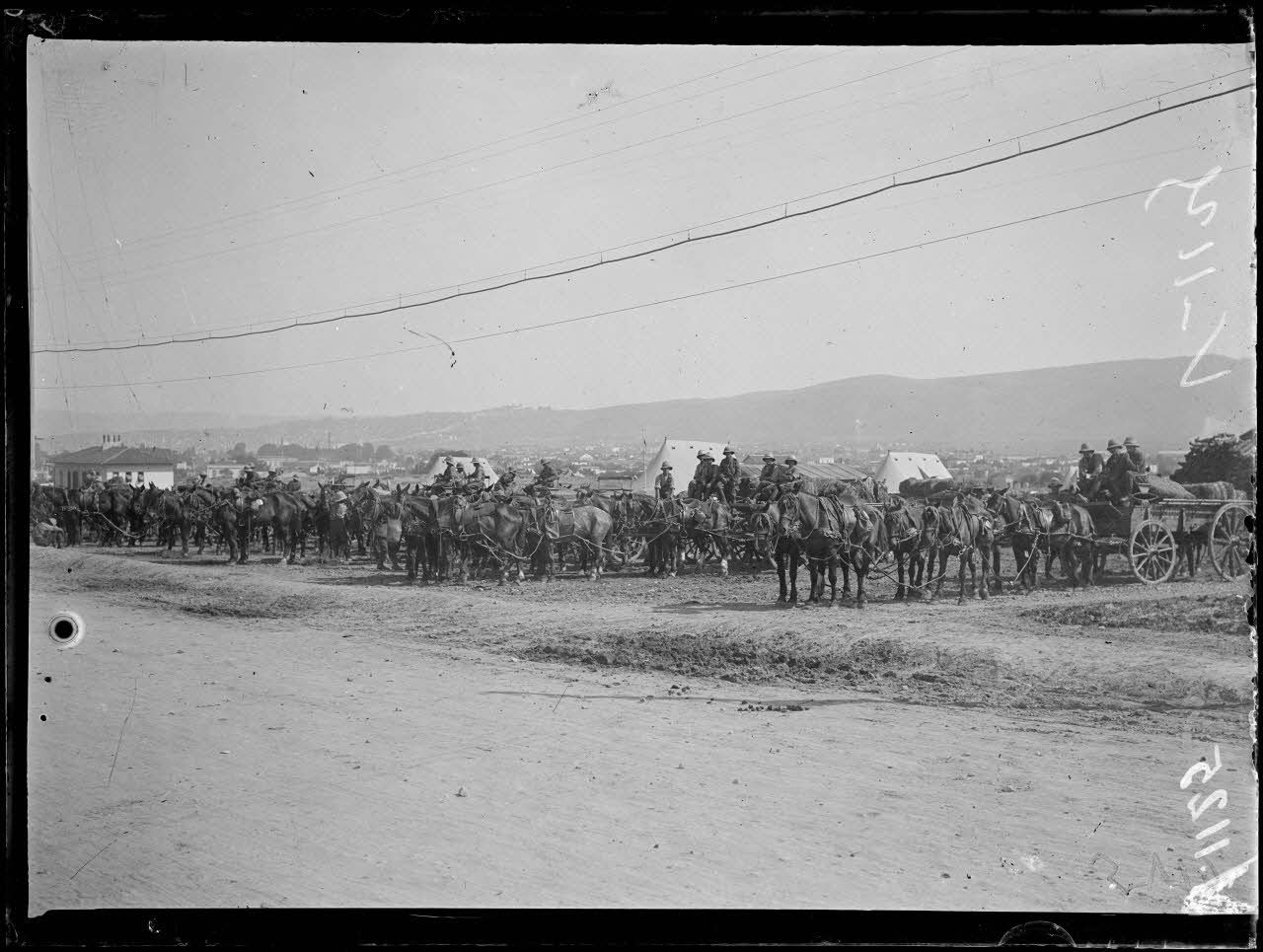A quelques kilomètres du front balkanique, le camp de Salonique est occupé par la cavalerie anglaise et des pièces d'infanterie collective comme des mitrailleuses anglaises Vickers mises en batterie par des soldats australiens (V 1123).
