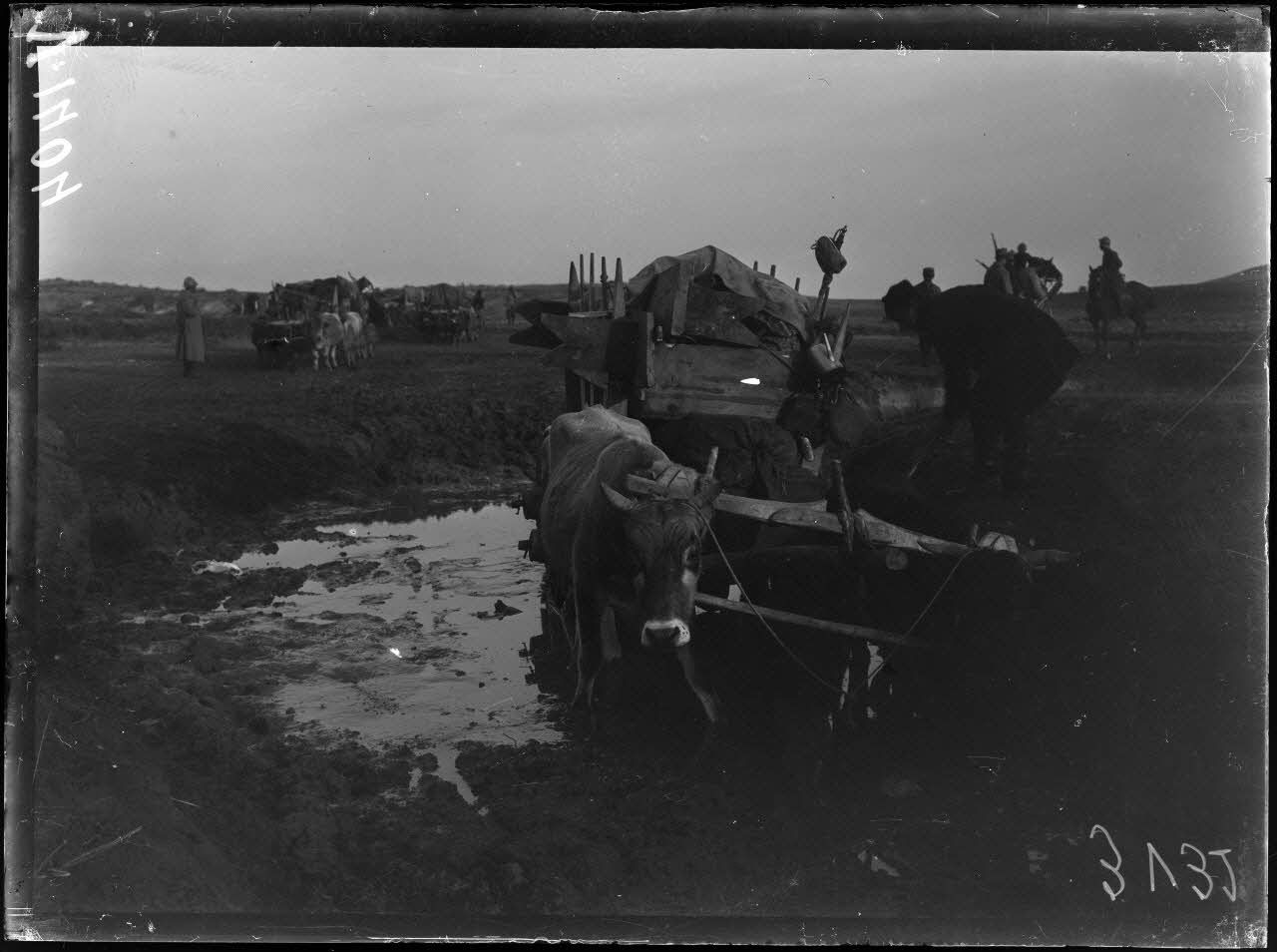 Près Vrtelom. Passage difficile d'un convoi de chars à boeufs.